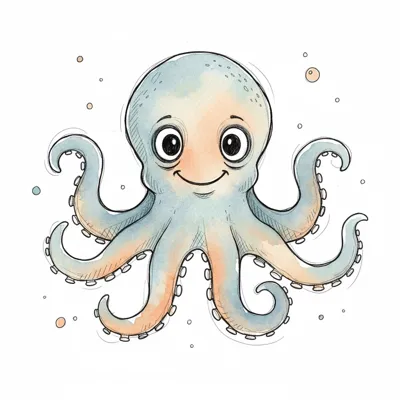 Ein niedlicher, cartoonartiger Oktopus mit großen Augen und bunten Tentakeln.