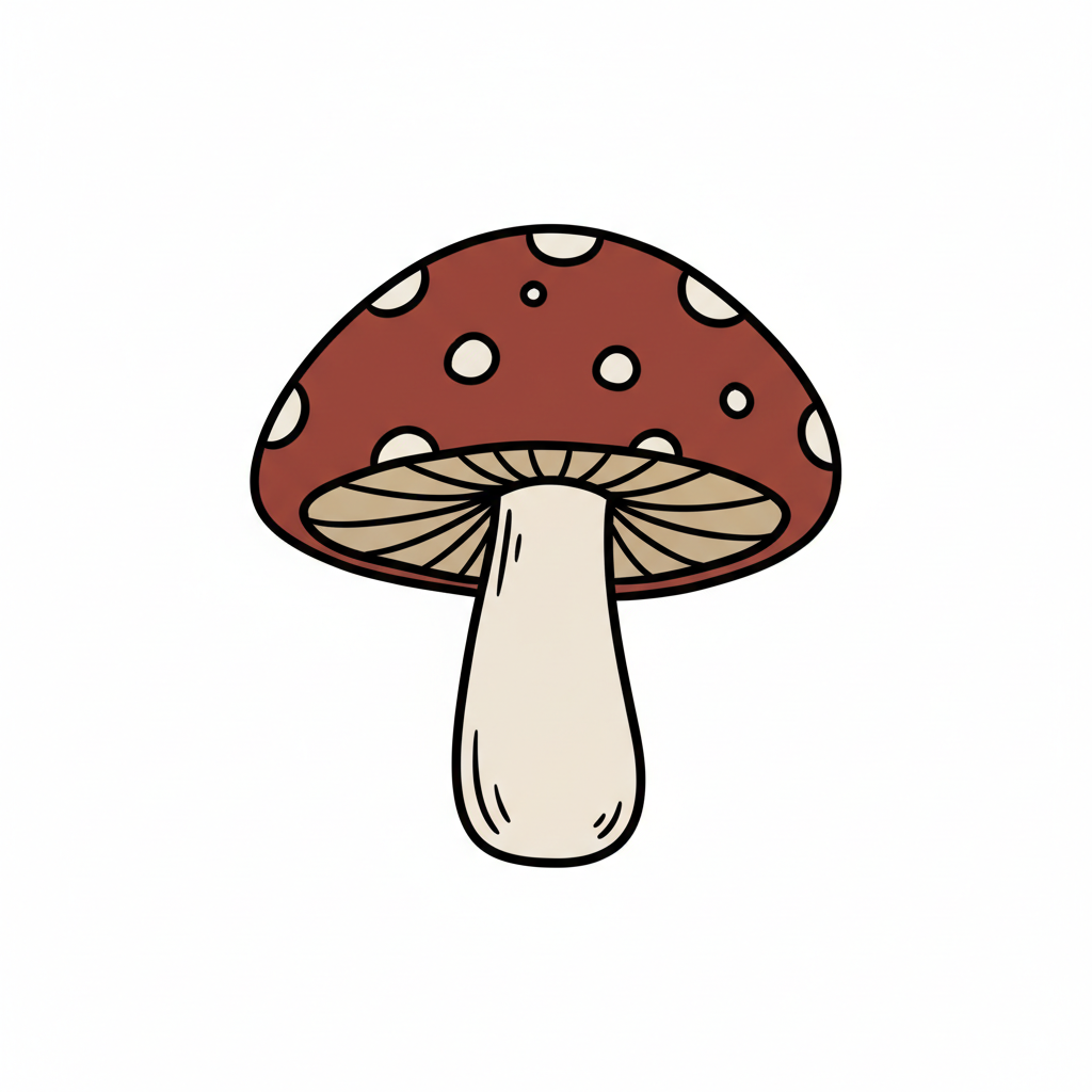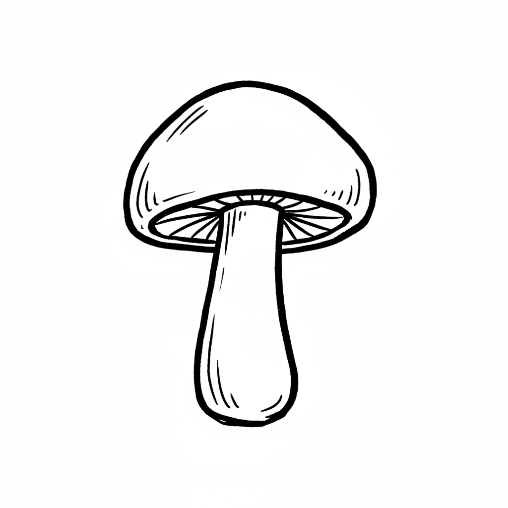 Ein einfach gezeichneter Pilz mit rundem Hut und gestieltem Stamm.
