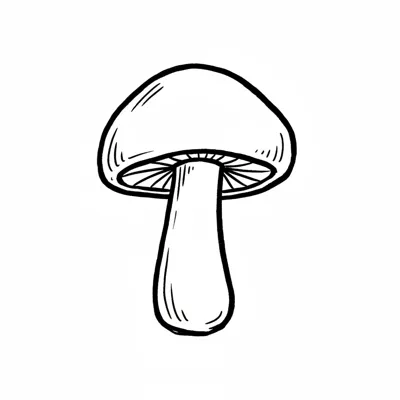 Ein einfacher, skizzenhafter Pilz mit runder Kappe und stilisiertem Stiel.