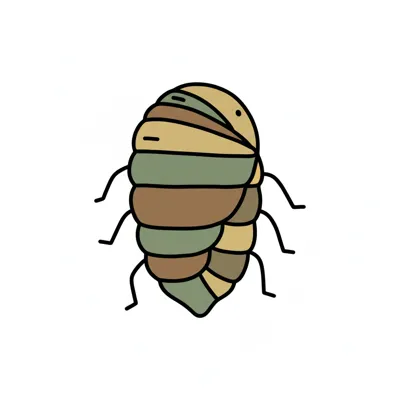 Ein stilisierter Käfer in verschiedenen Grüntönen mit Beinen.