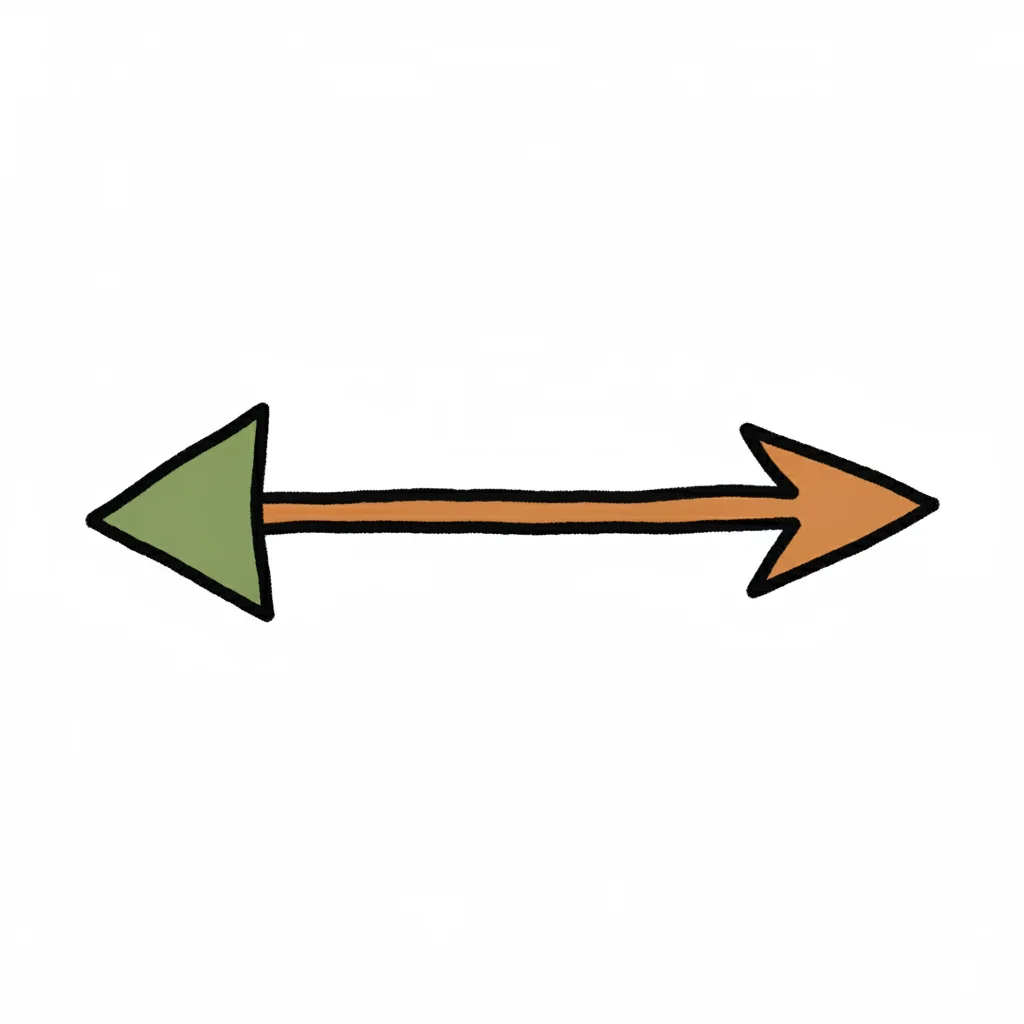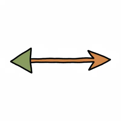 Handgezeichneter Doppelpfeil mit grüner linker und oranger rechter Spitze auf weißem Hintergrund.