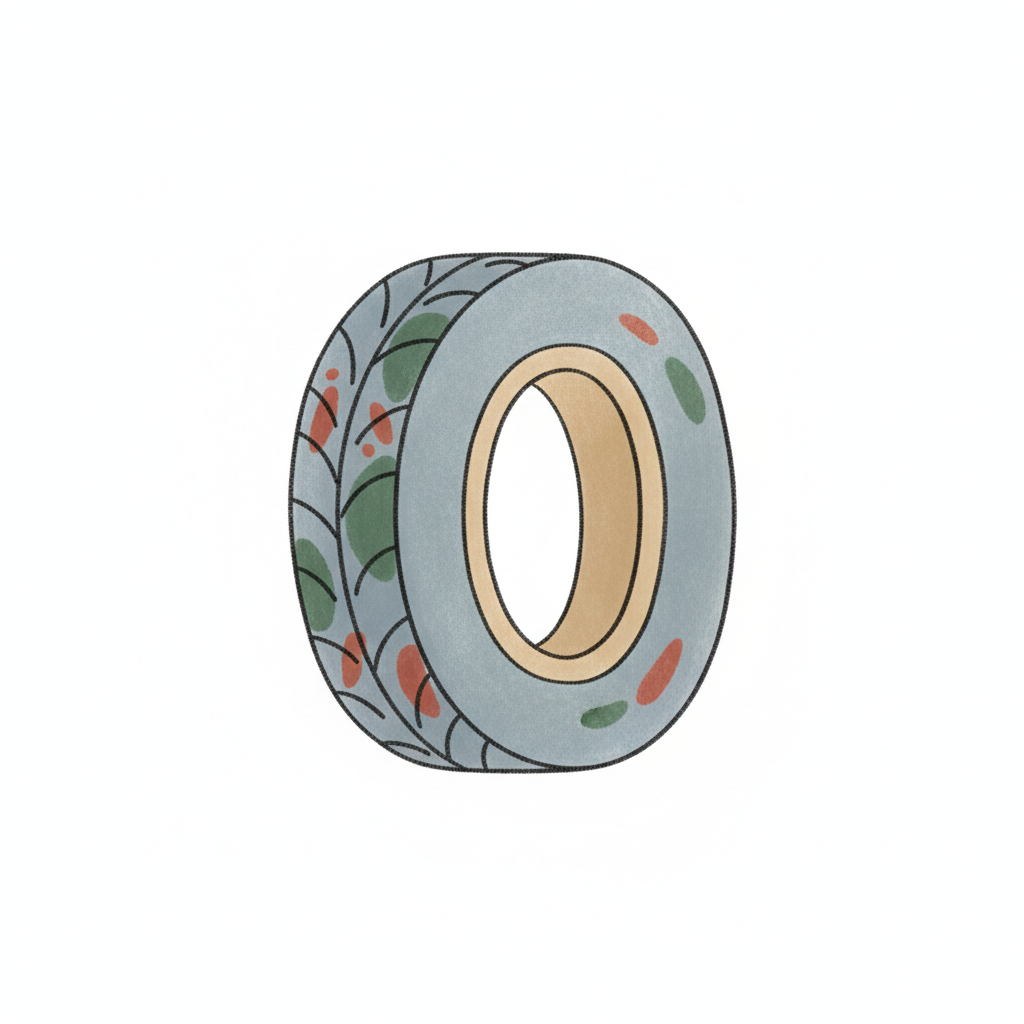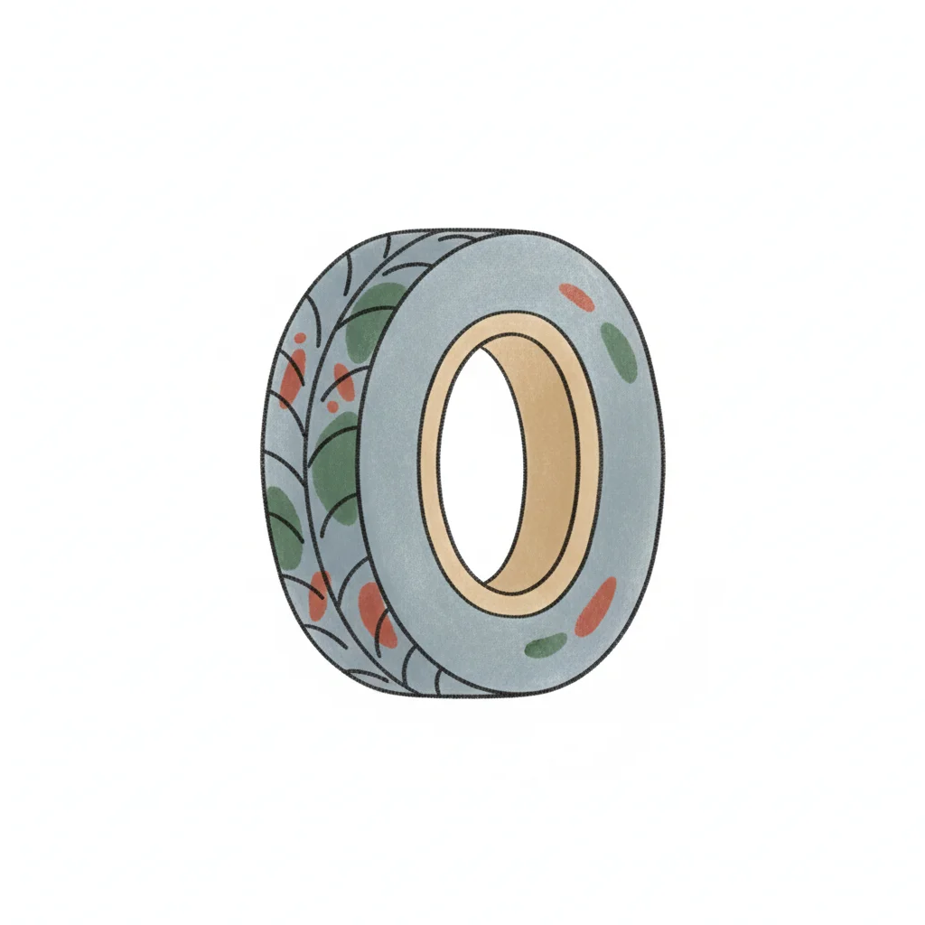 Illustrierter, hellblauer Reifen mit grünen und roten Flecken auf weißem Hintergrund.