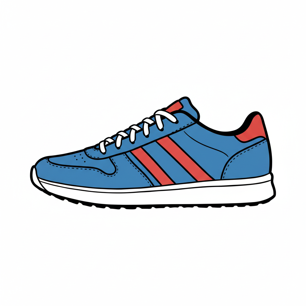 Illustration eines blauen Sportschuhs mit roten Streifen und weißer Sohle.