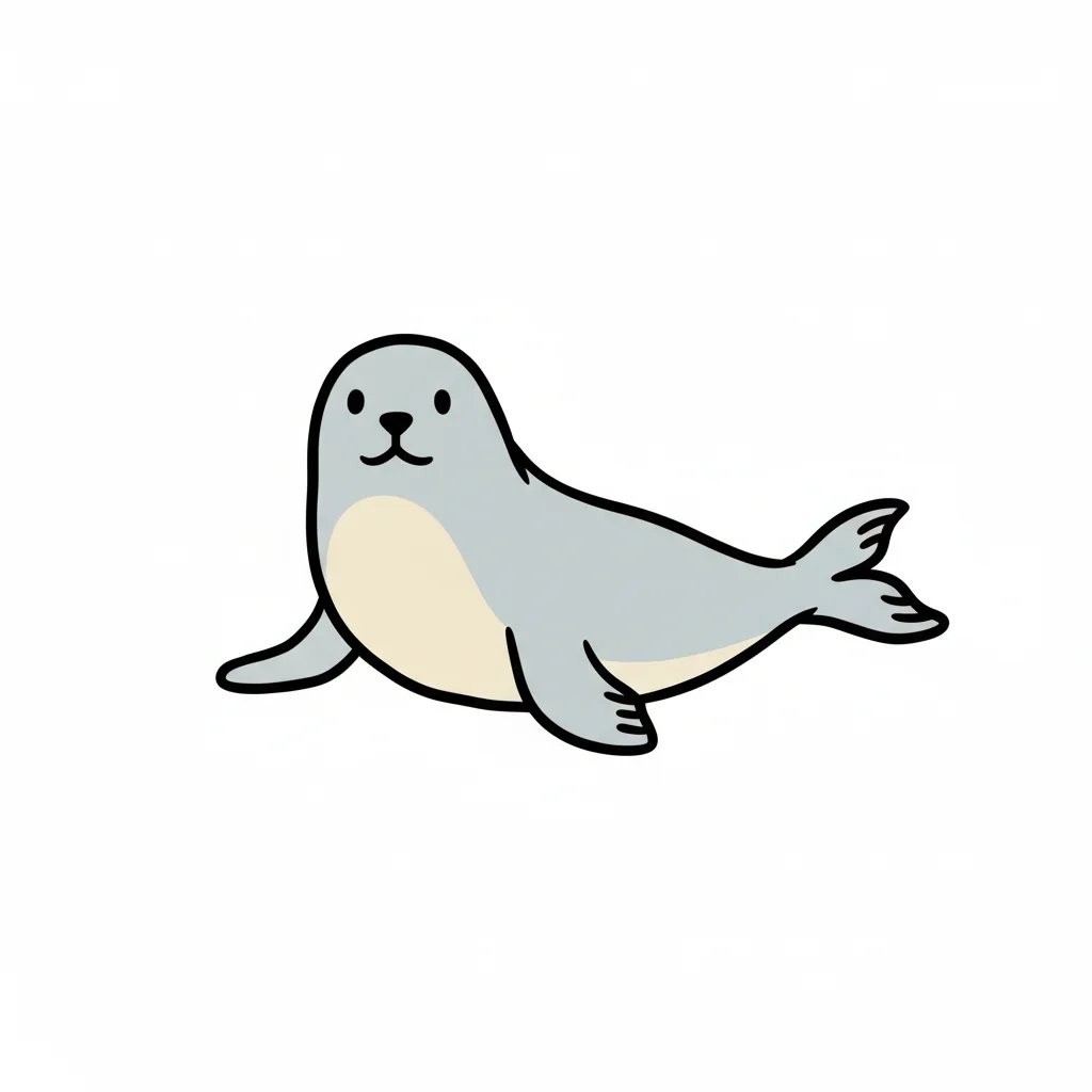 Eine niedliche Zeichnung einer Robbe mit großen Augen und einem freundlichen Ausdruck.