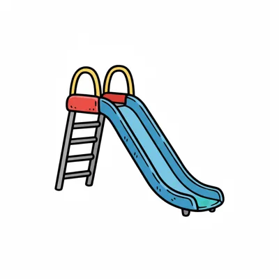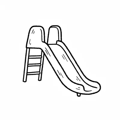 Eine einfache Rutsche mit einer Leiter, skizzenhaft dargestellt.