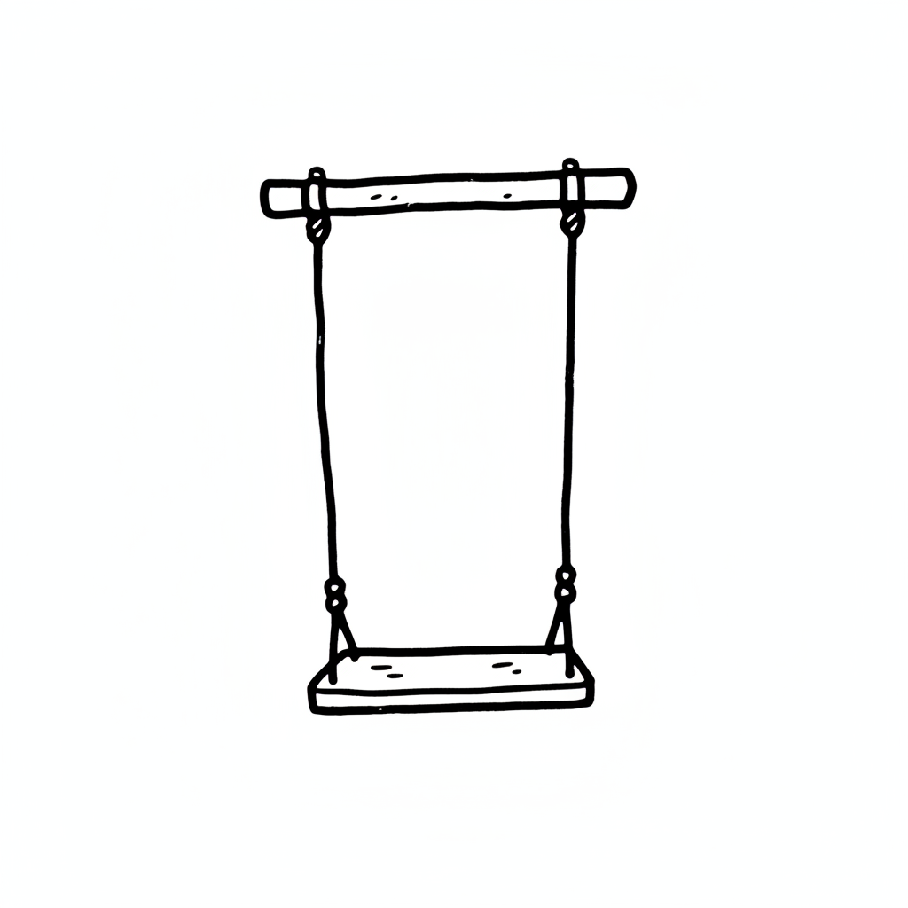 Ein einfaches Zeichnung eines Spielplatzes mit Rutsche und Schaukeln.