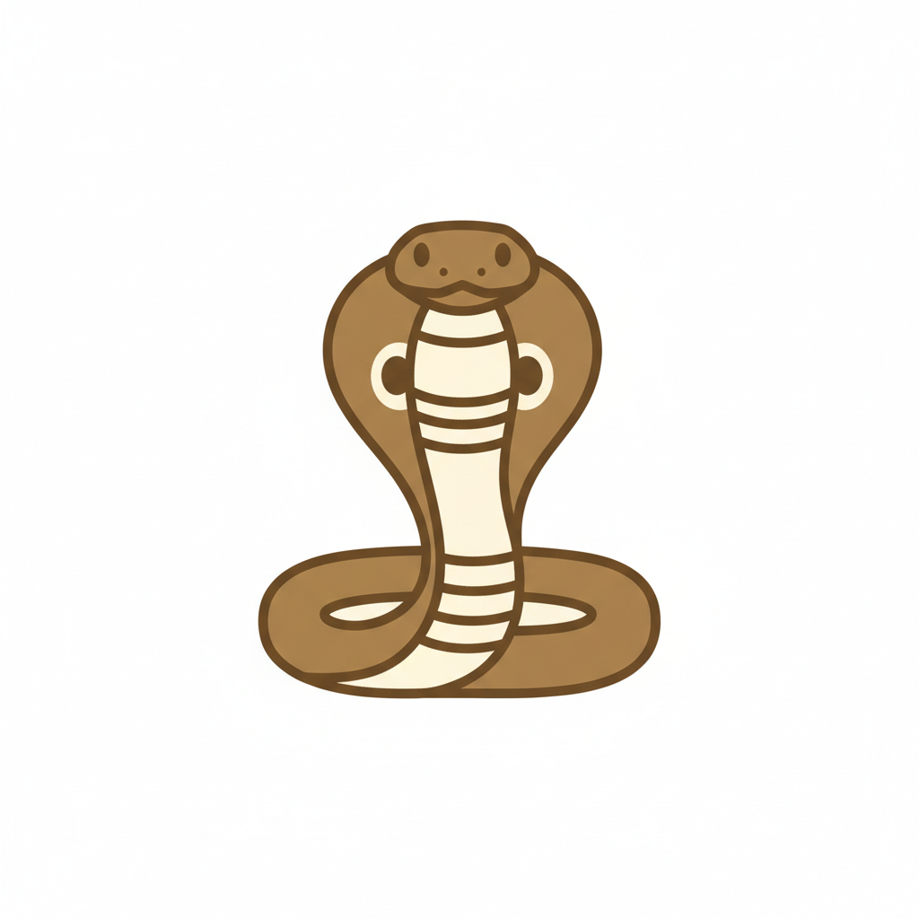Eine stilisierte Kobra mit erhobenem Kopf und breitem Nacken.