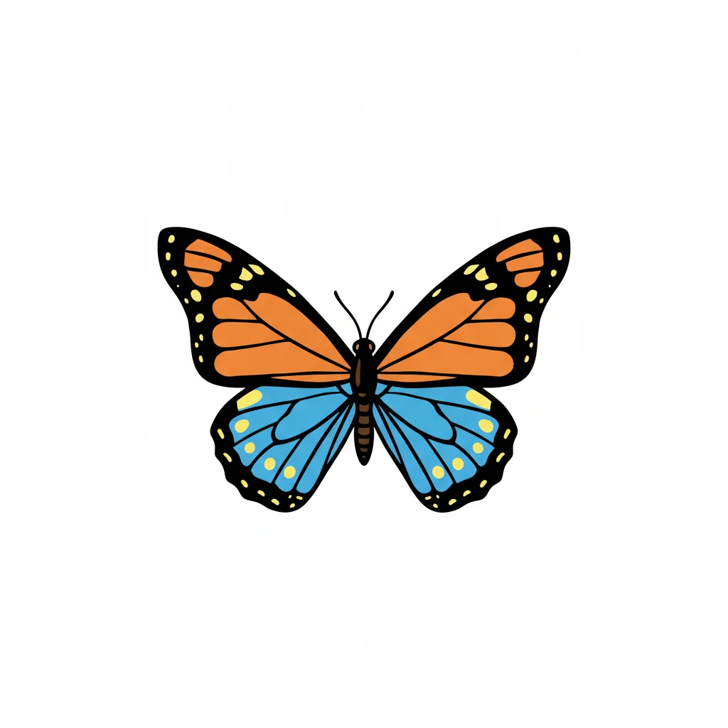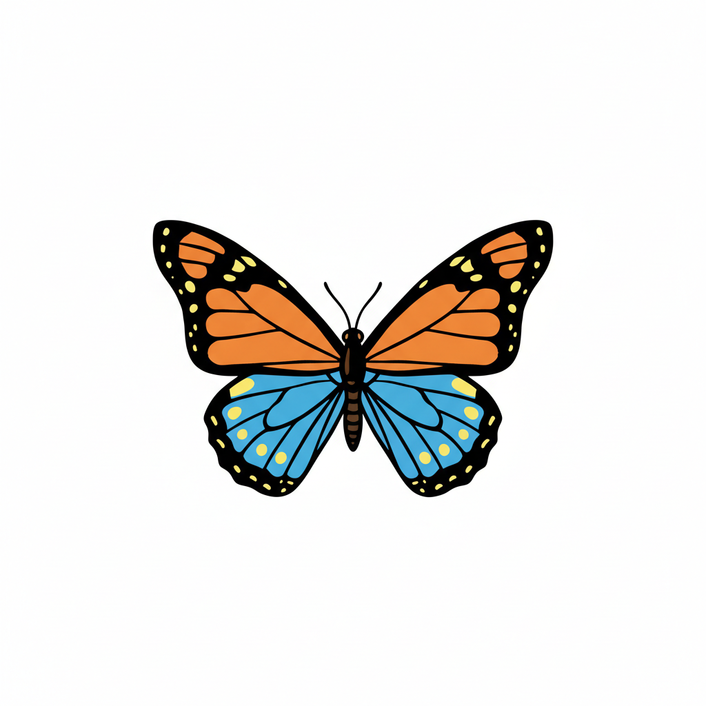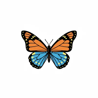 Bunter Schmetterling mit orangefarbenen und blauen Flügeln.