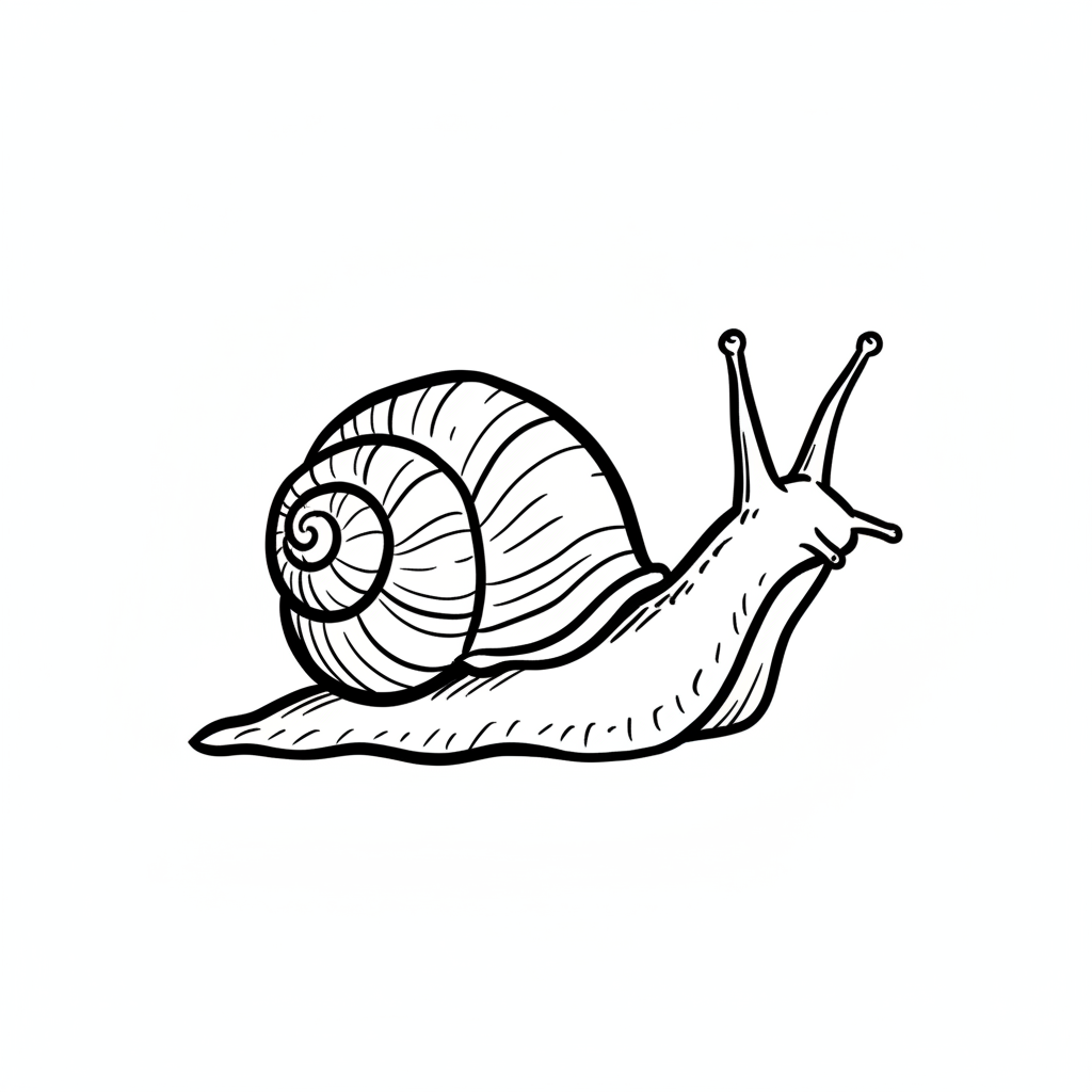 Ein minimalistisches, skizziertes Bild einer Schnecke.