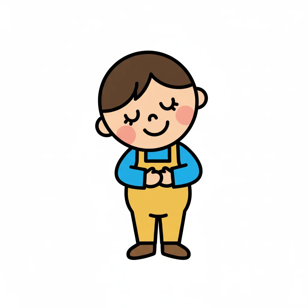Ein lächelnder, cartoonartiger Junge mit T-Shirt und Shorts.
