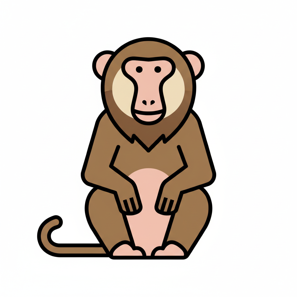 Grafik eines sitzenden, lächelnden Affen in einfacher Linienzeichnung.