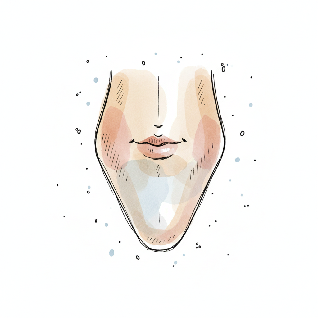 Aquarell-Illustration des unteren Gesichts mit Mund, Wangen und Kinn in skizzenhaftem Stil.