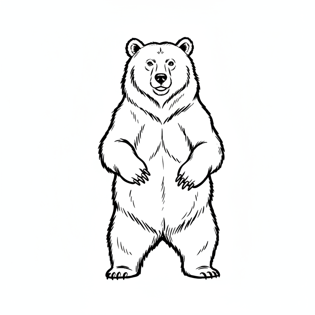 Ein stehender Bär mit einem freundlichen Gesichtsausdruck.