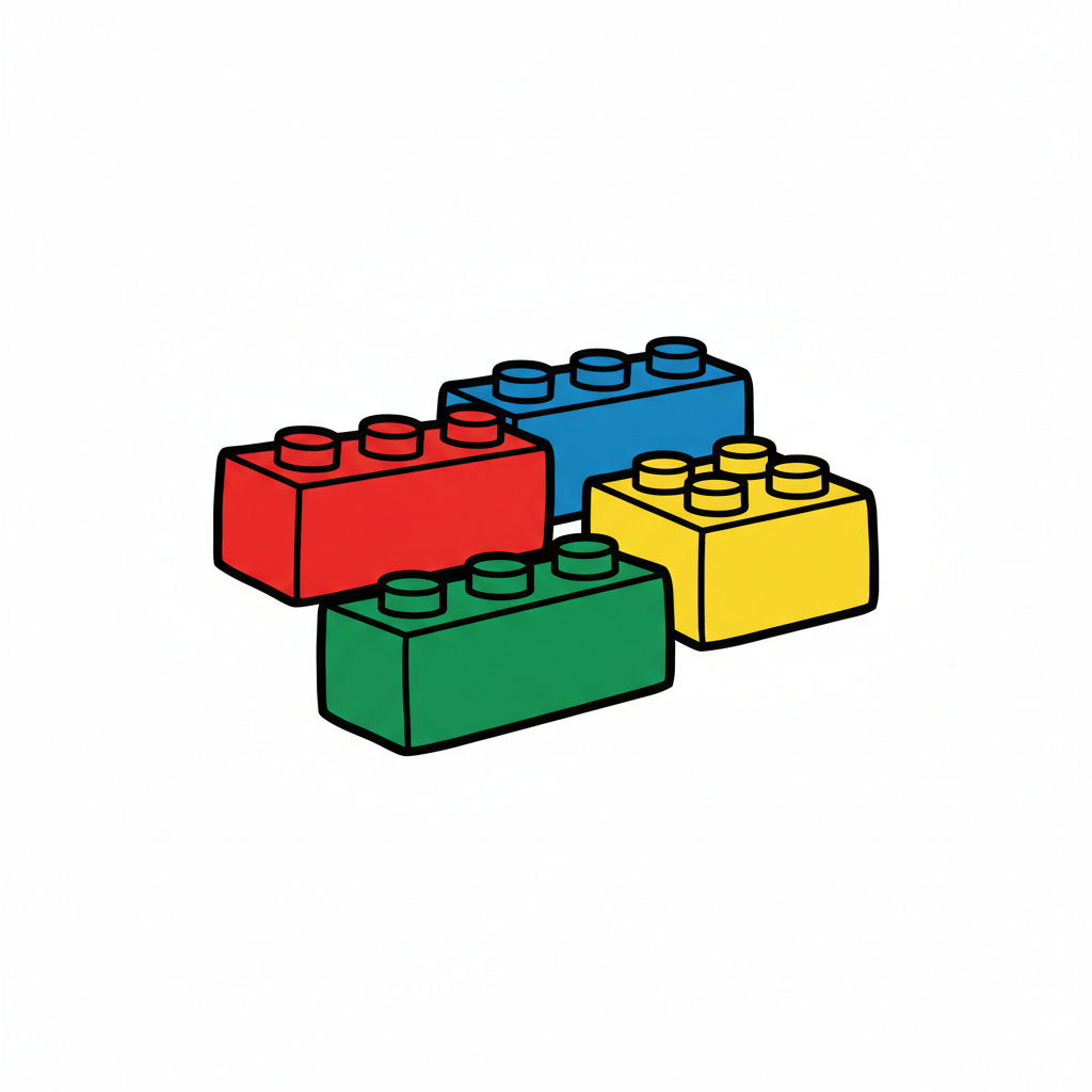 Schlichte Zeichnung von Bausteinen in verschiedenen Formen, einschließlich Haus und Auto.