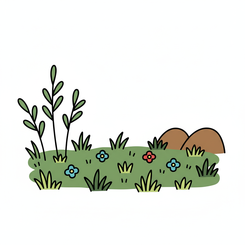 Minimalistische, handgzeichnete Illustration mit deutlich handgezeichneter Wirkung. Handgezeichnete Schwarze Konturen ungleichmäßig und unregelmäßig von Hand gezeichnet. Figuren werden mit stark vereinfachten Körperformen dargestellt. Arme und Beine sind nur als einfache Linien oder Strichformen angedeutet. Flächige Farben ohne Verläufe oder Texturen, ruhige harmonische Farbpalette und reduzierte Details sorgen für eine klare, kindgerechte Darstellung. Saubere, übersichtliche Komposition mit rein weißem Hintergrund.