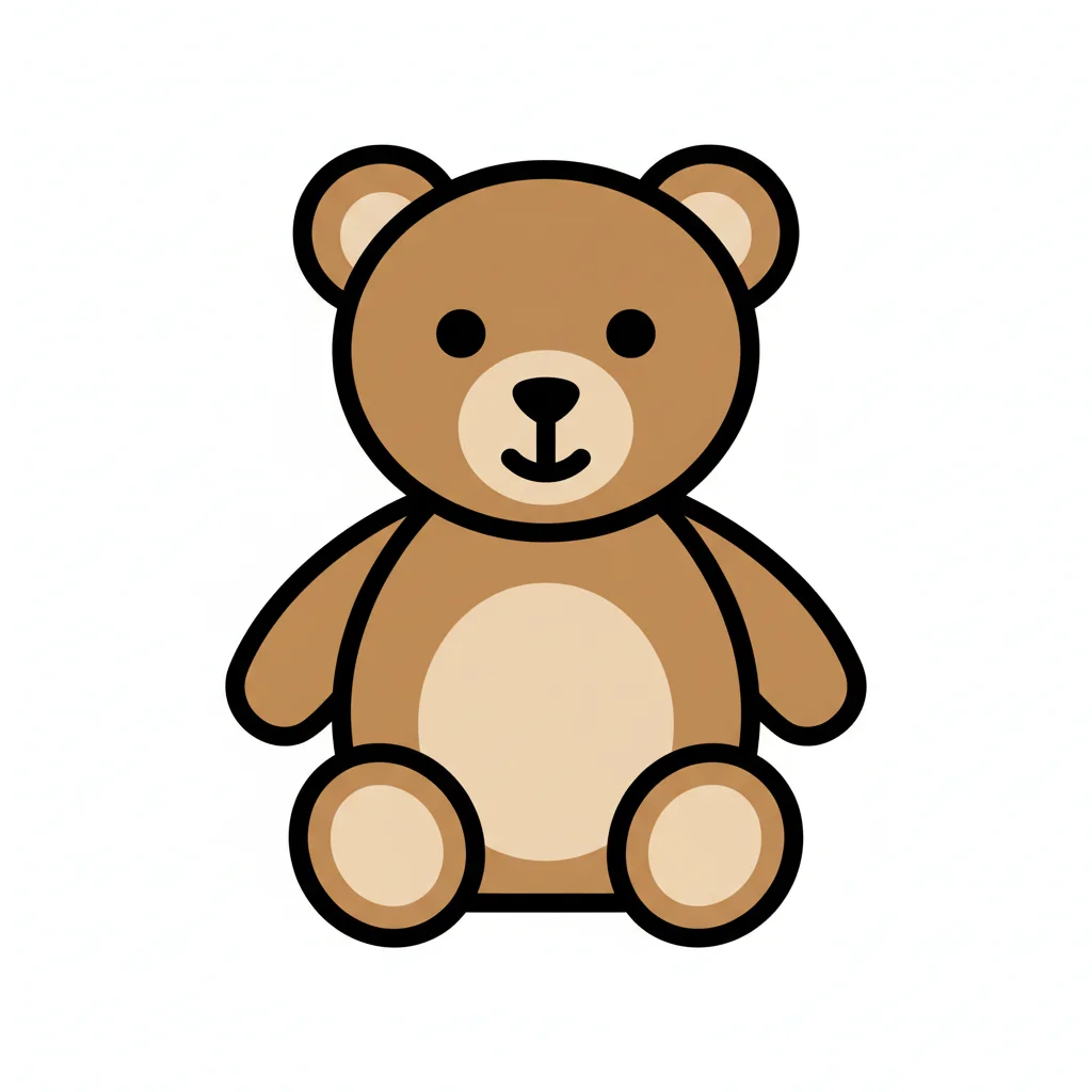 Kuscheliger, brauner Teddybär mit runden Ohren und freundlichem Gesicht.