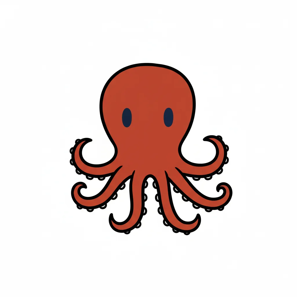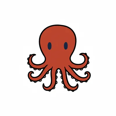 Ein stilisierter, cartoonartiger Oktopus mit acht Tentakeln.