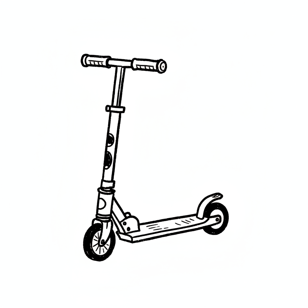 Ein einfaches, skizzenhaftes Bild eines Tretrollers.