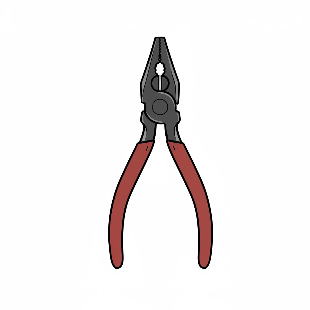 Cartoon-Illustration einer grauen Zange mit roten Griffen, isoliert auf weißem Hintergrund.