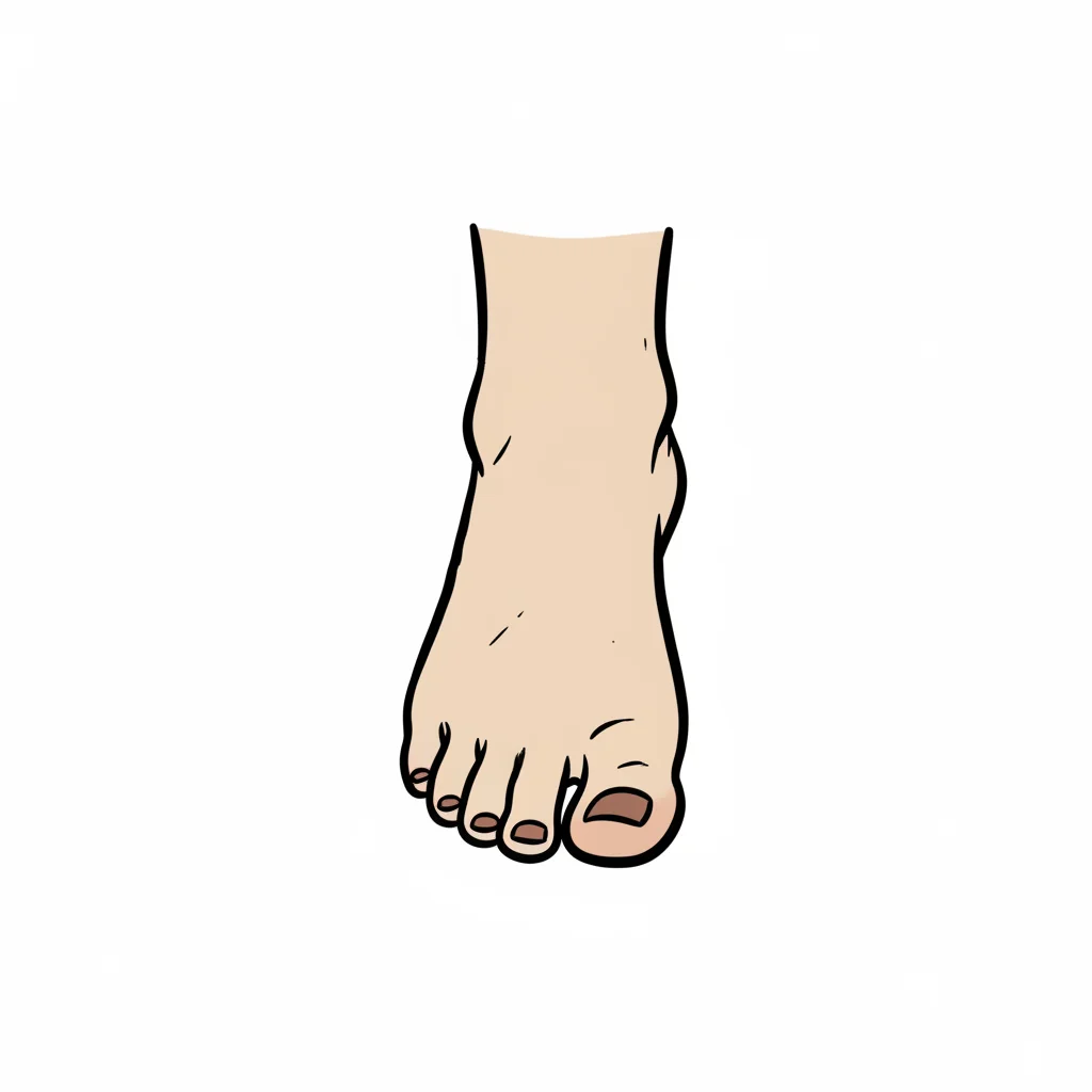 Cartoon-Fuß mit dunklen Zehennägeln, von oben gesehen, auf weißem Hintergrund.