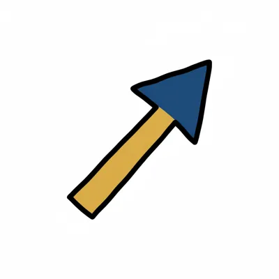 Handgezeichneter Pfeil mit gelbem Schaft und blauer Spitze, zeigt schräg nach oben rechts.