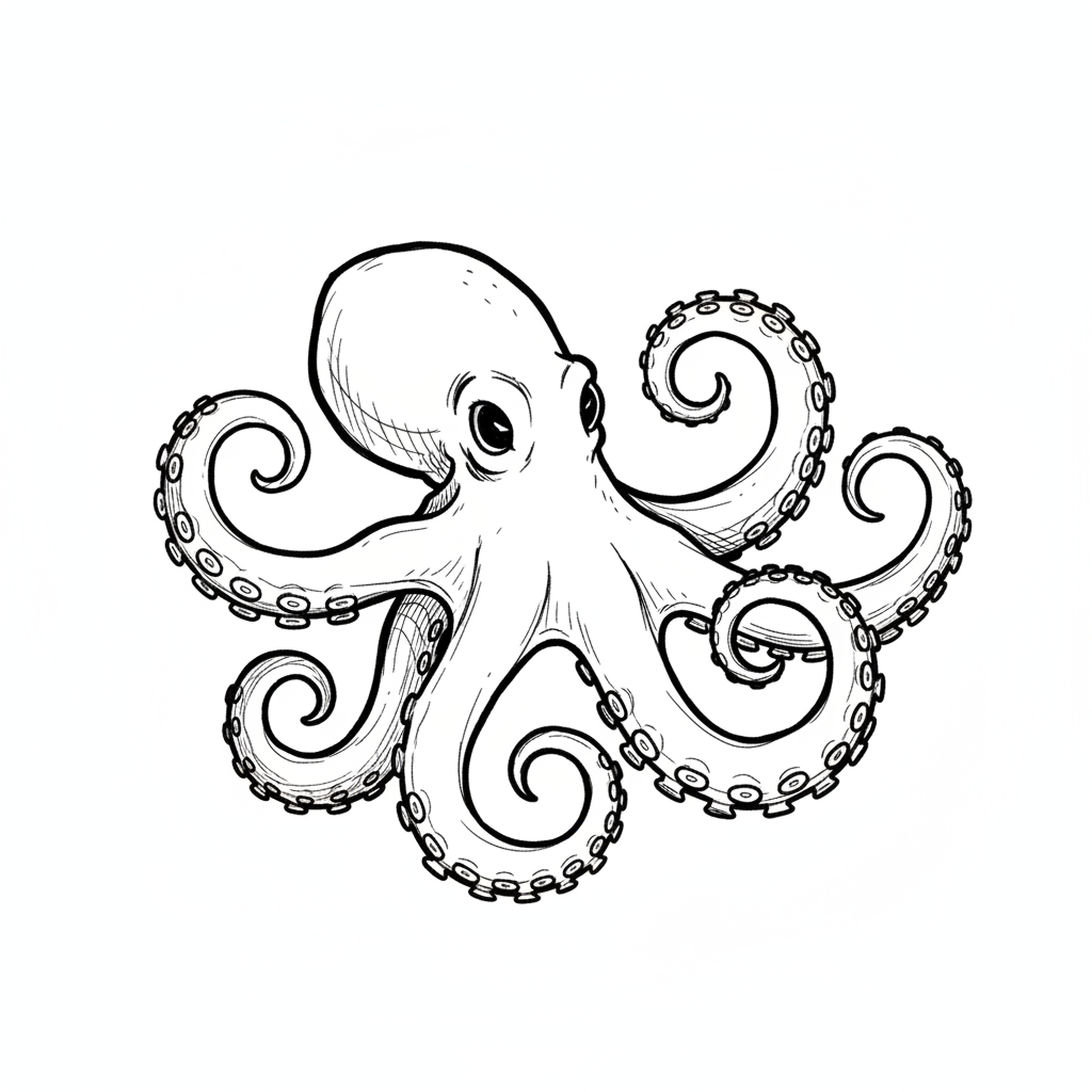 Ein niedlicher, cartoonartiger Oktopus mit großen Augen und vielen Tentakeln.