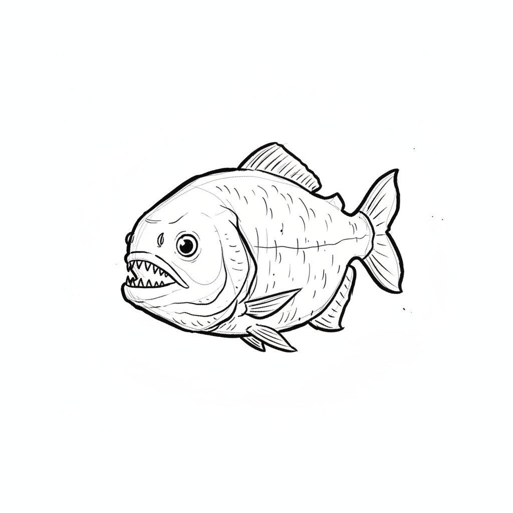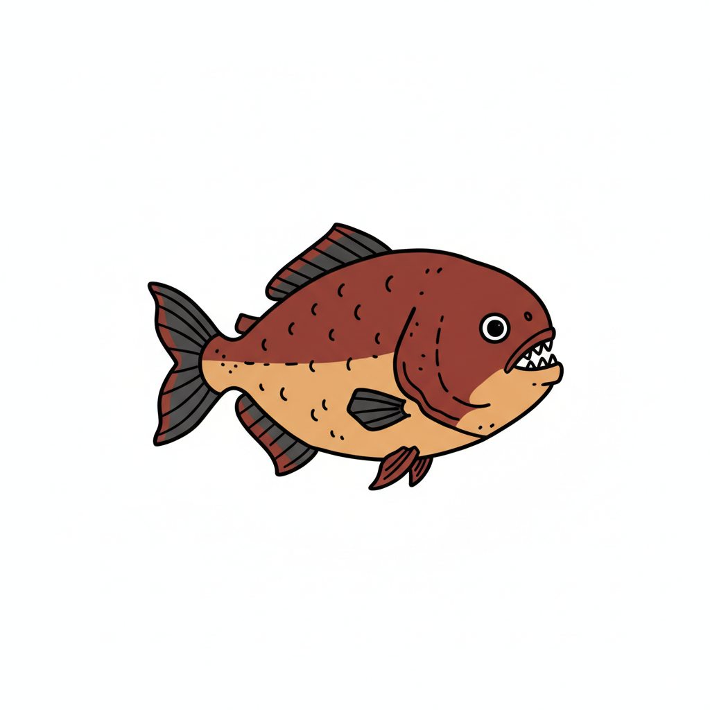 Ein gezeichneter Fisch mit spitzen Zähnen und buntem Körper.