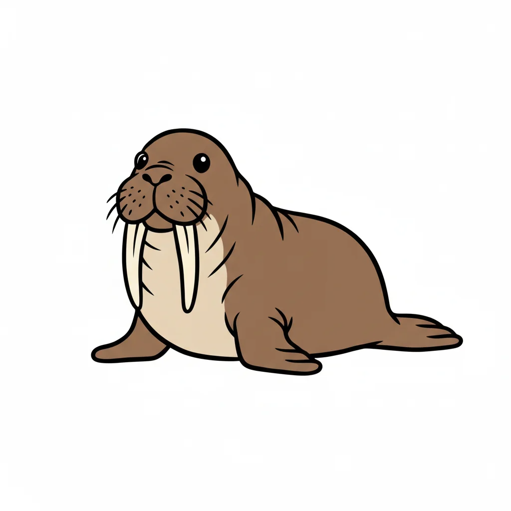 Ein niedlicher, cartoonartiger Walross mit großen Stoßzähnen.