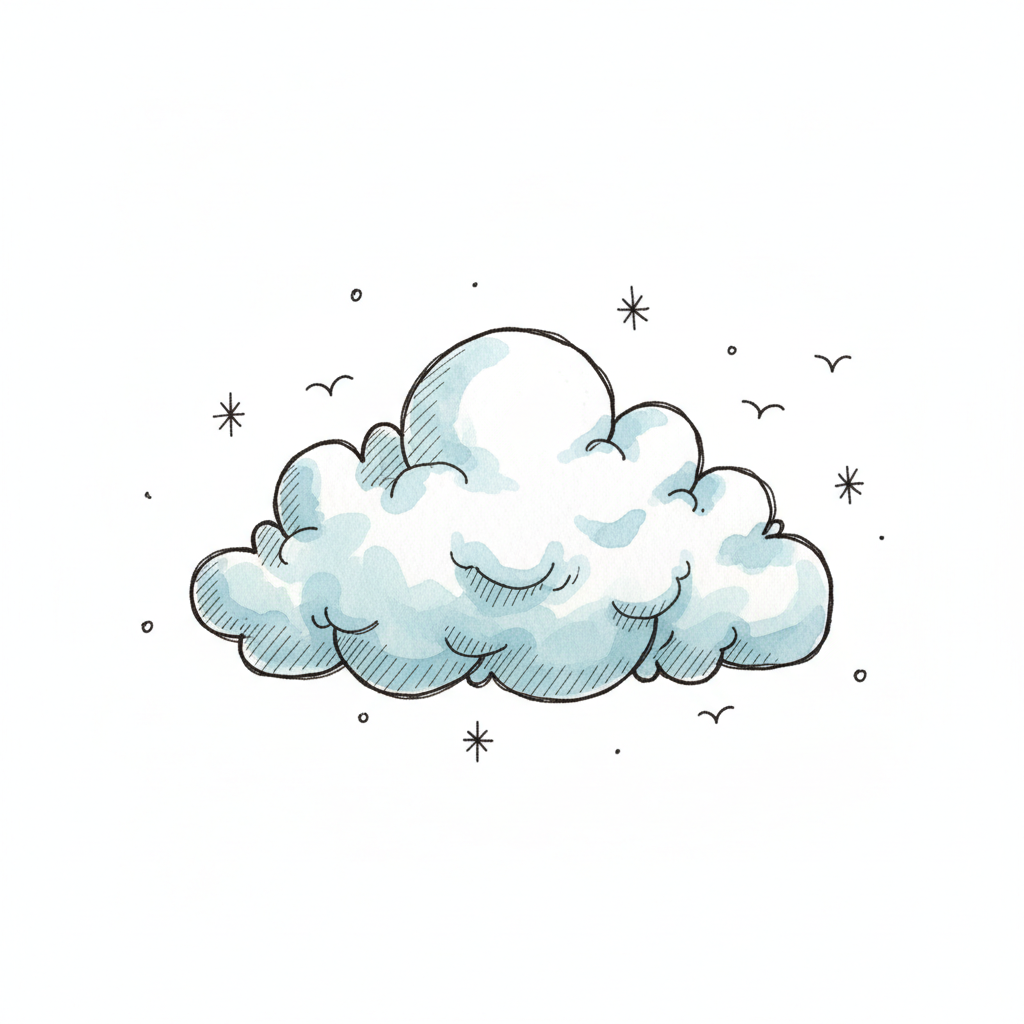 Ein handgezeichnete Wolke mit zarten Farben und umgebenden Vögeln.