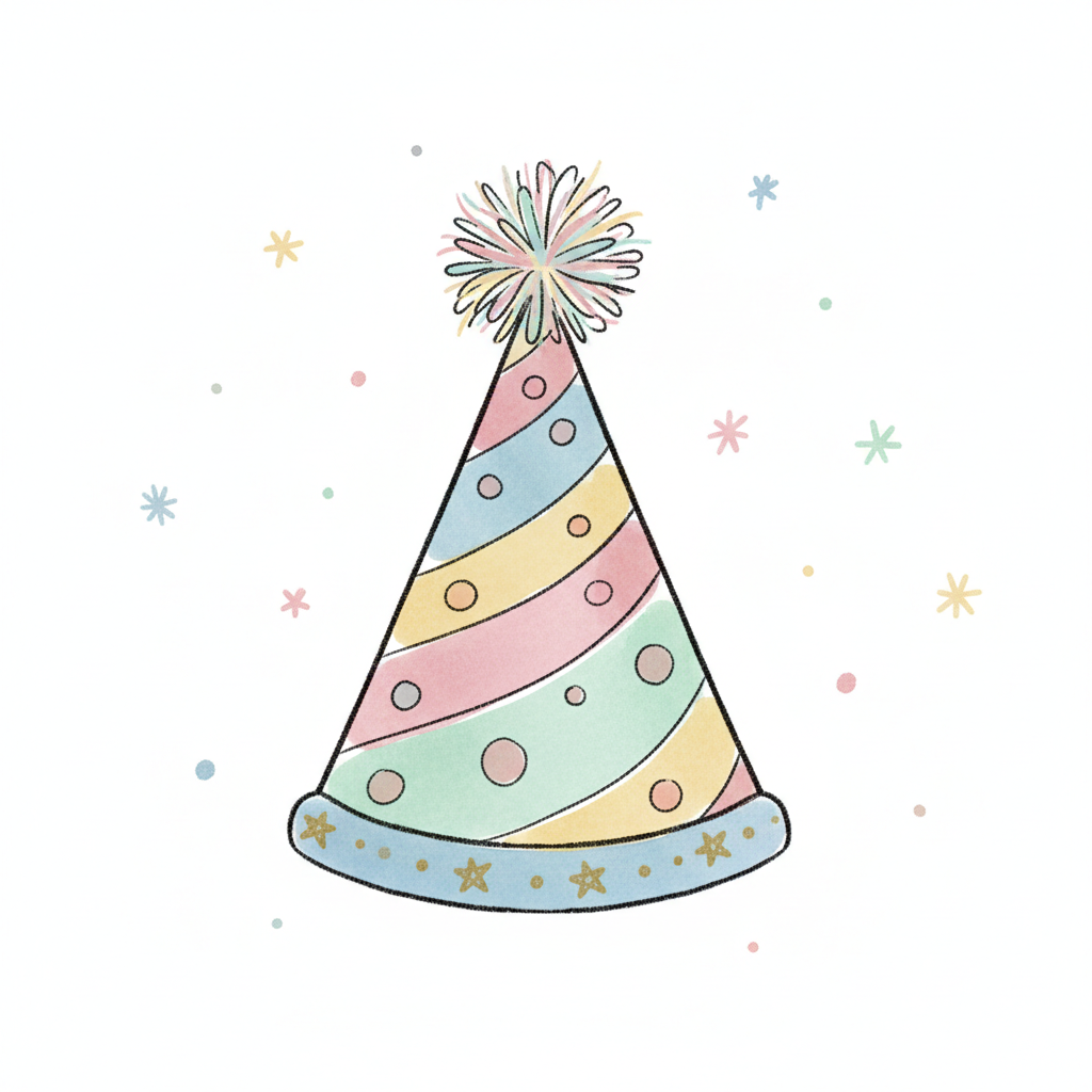 Bunter Partyhut mit einem Pompom und verzierenden Punkten.