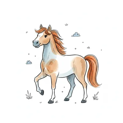 Ein farbenfrohes, handgezeichnetes Pferd in einer freundlichen Pose.