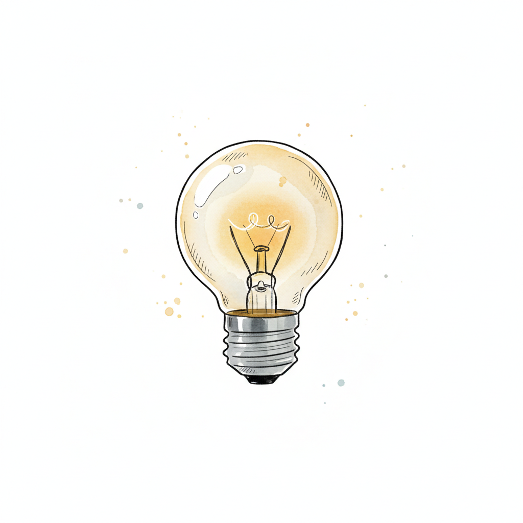 Eine Glühbirne mit einem warmen Lichtschein und skizzenhaftem Design.