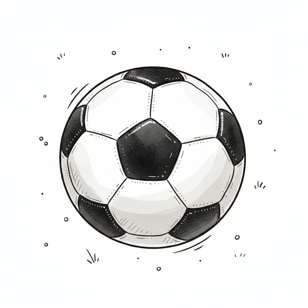 Ein skizzenhaft gezeichneter Fußball auf einem weißen Hintergrund.