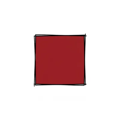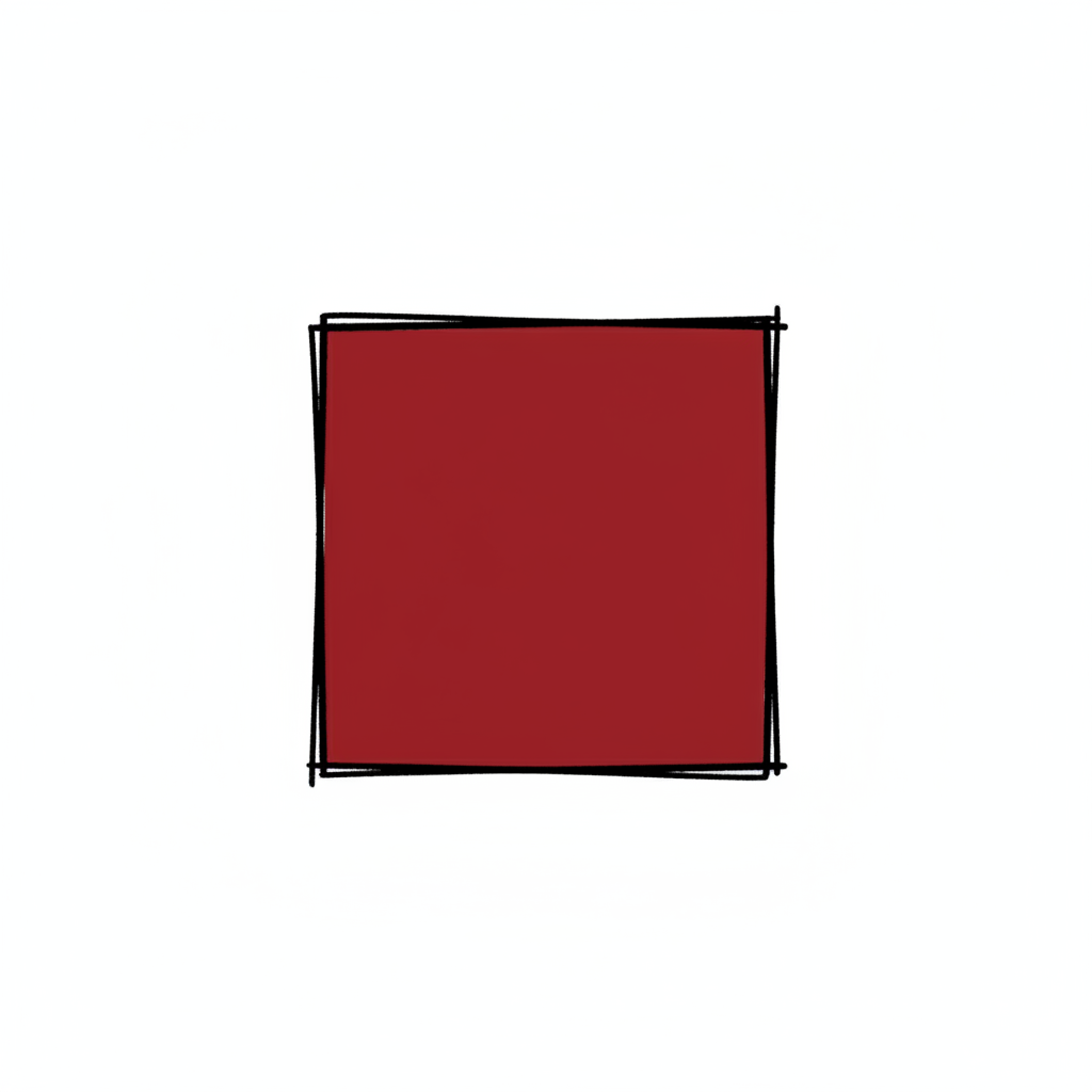 Rotes Quadrat mit skizziertem Rand auf weißem Grund.
