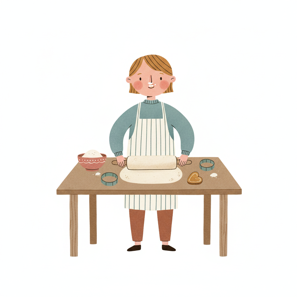 Handgezeichnete Kinderbuchillustration im modernen skandinavisch-nordischen Stil. Minimalistische, freundliche mit einfachen Formen und leicht unregelmäßigen, handgezeichneten Linien. Ruhige, gedeckte Farbpalette, viel freie Fläche, reduzierte Details, sanfte Papier- oder Aquarellstruktur. Warme, ruhige, leicht humorvolle Stimmung, flächige Komposition ohne starke Perspektive, moderner nordischer Illustrationsstil, charmant und zeitlos. Hoher Kontrast, isoliert auf weißem Hintergrund. WICHTIG: KEIN TEXT im Bild. Hintergrund: Rein weiß.