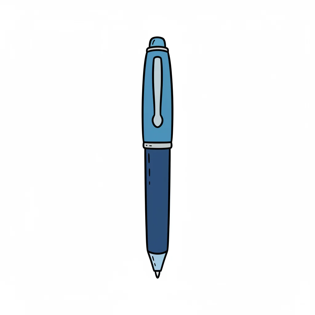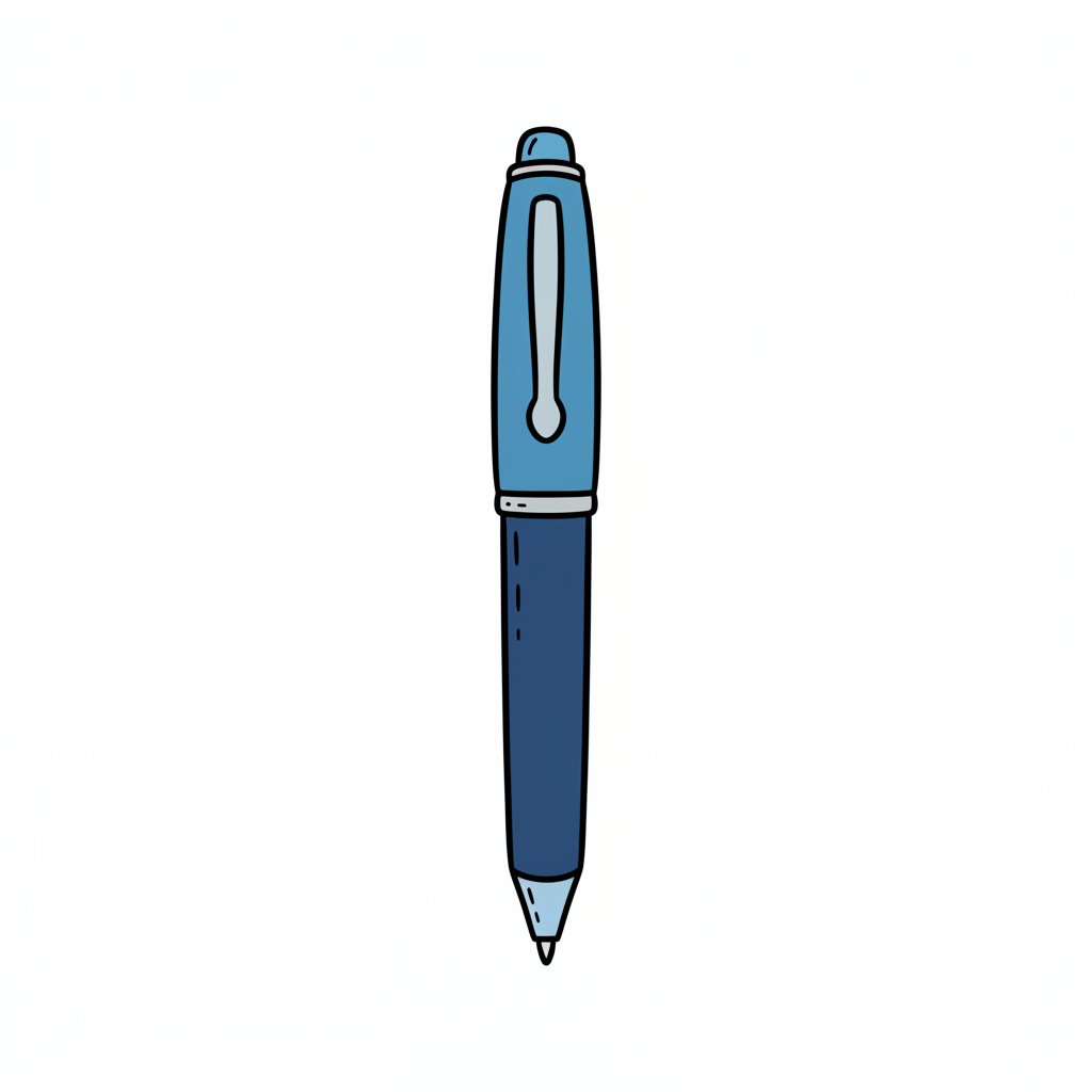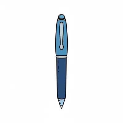 Einfache, gezeichnete blaue Kugelschreiber mit Kappe auf weißem Hintergrund.