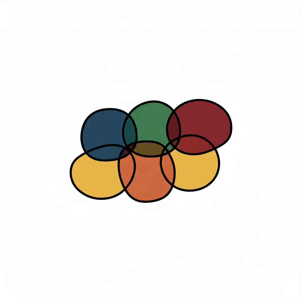 Mehrere überlappende, farbige Kreise auf weißem Hintergrund, die eine komplexe Form bilden.