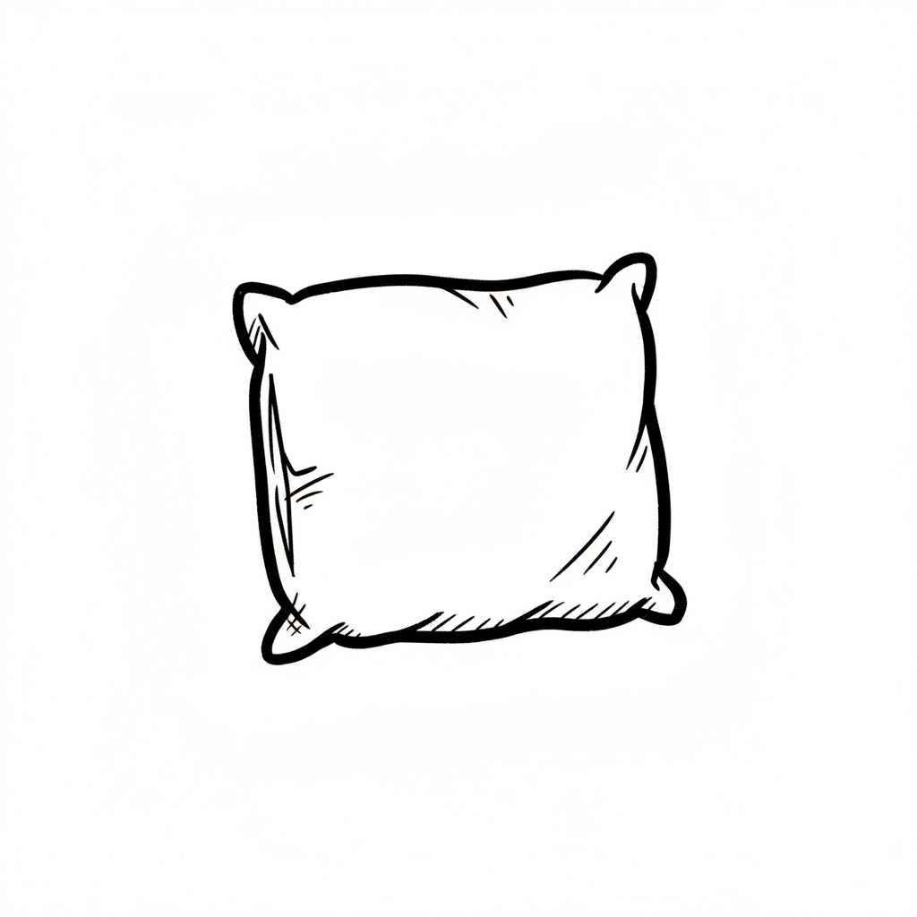 Handgezeichnetes, weißes Kissen im Cartoon-Stil mit schwarzen Umrissen und Schattierungen.