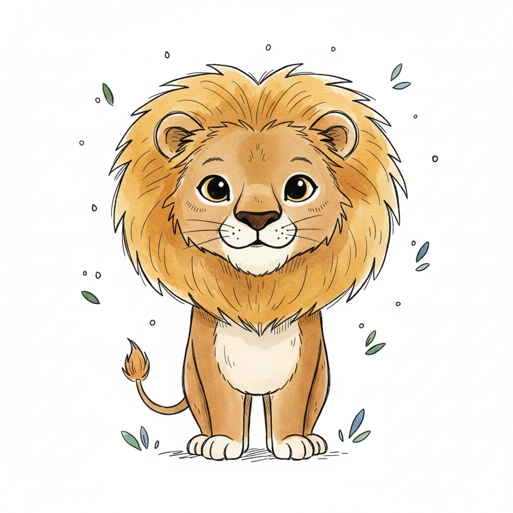Ein niedlicher, cartoonartiger Löwe mit einer großen Mähne.