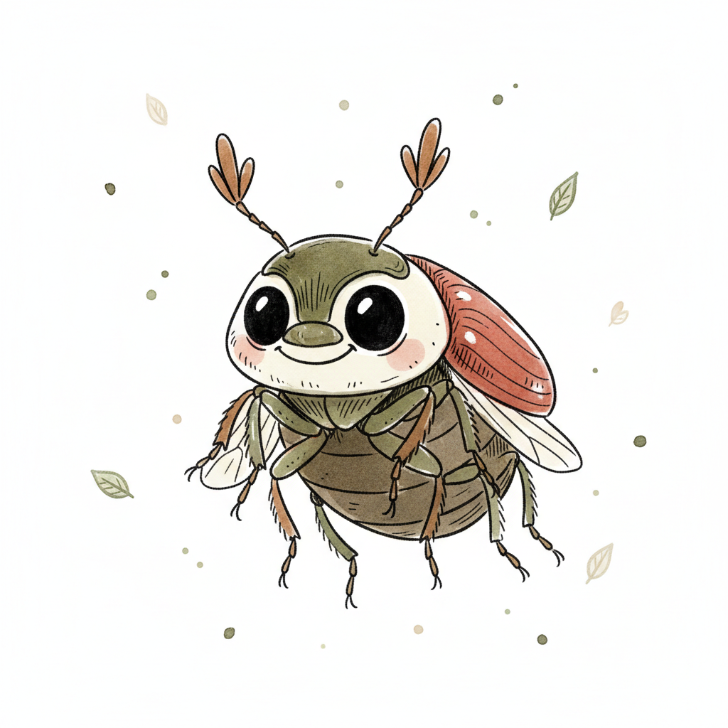 Künstlerische Darstellung eines niedlichen Käfers mit großen Augen.