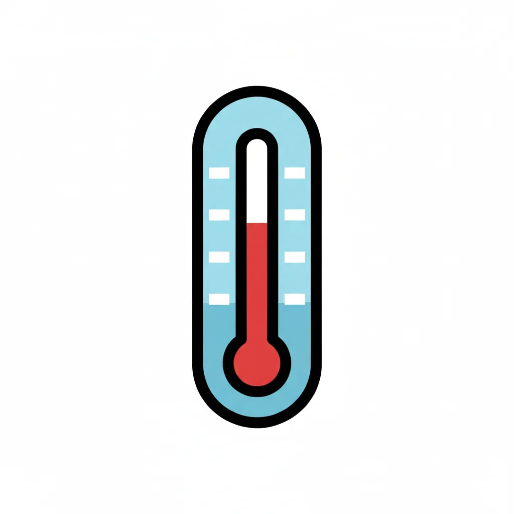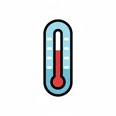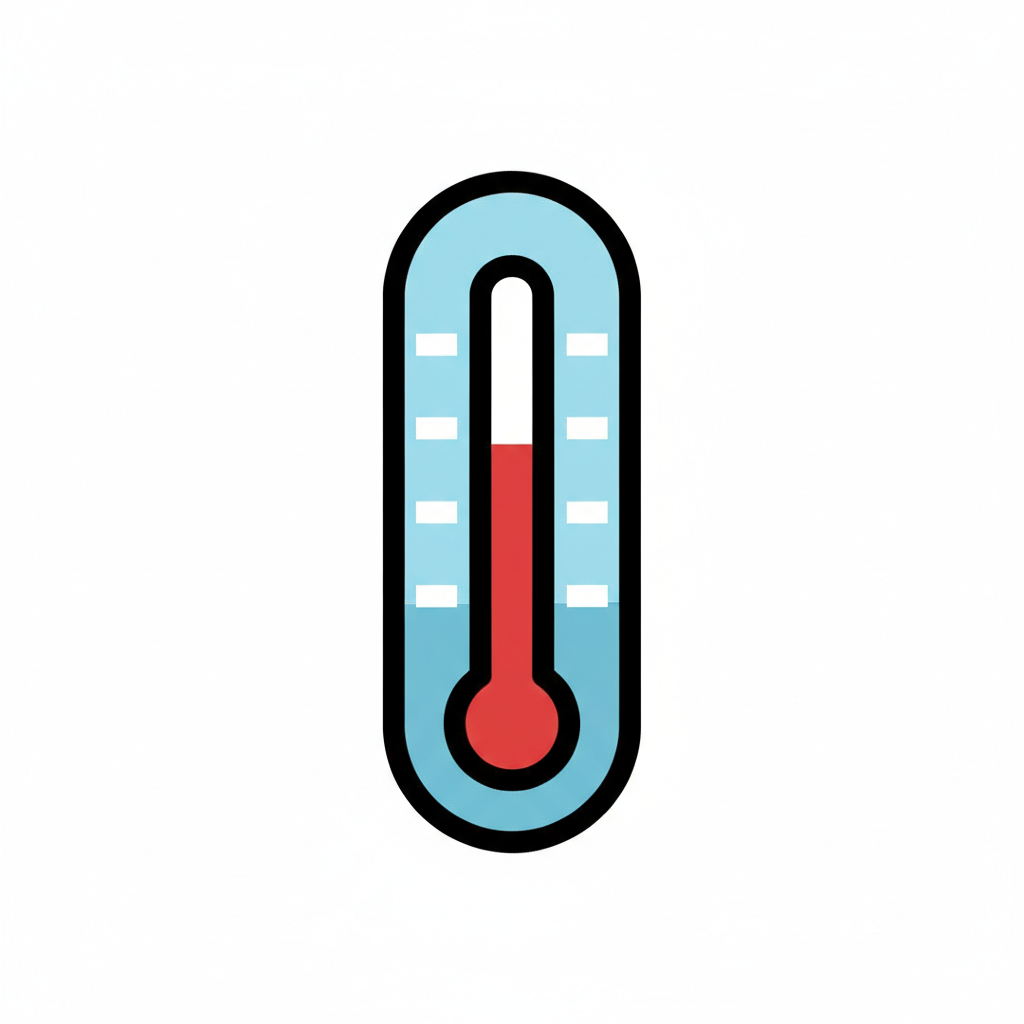 Ein stilisiertes Thermometer-Icon mit roter Flüssigkeit in hellblauem Gehäuse.