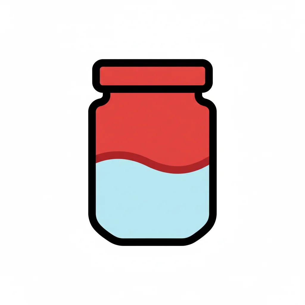 Stilisierte Illustration eines Glases mit rotem oberen Teil und blauer Flüssigkeit.