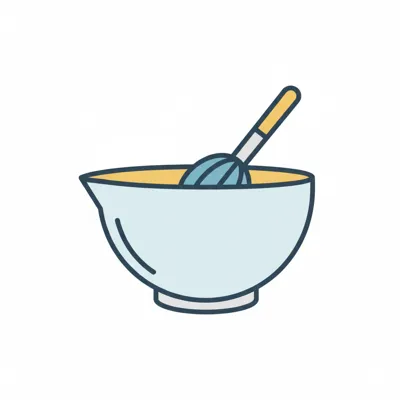 Illustration einer Rührschüssel mit gelber Flüssigkeit und einem Schneebesen.