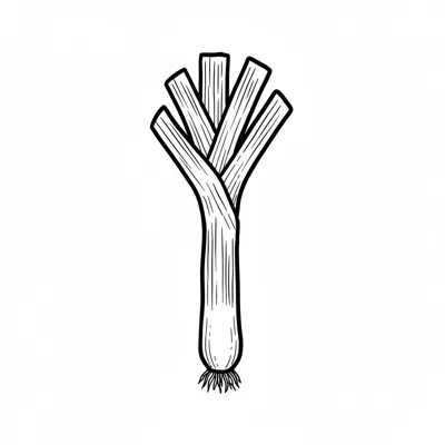 Zeichnung eines Lauchs mit langen, schmalen Blättern.