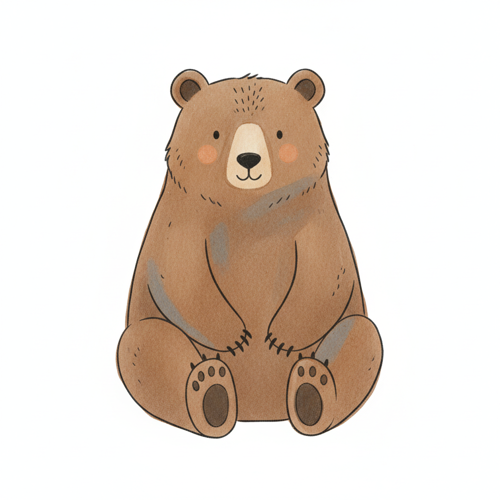 Niedlicher, cartoonartiger Bär sitzt gemütlich da.