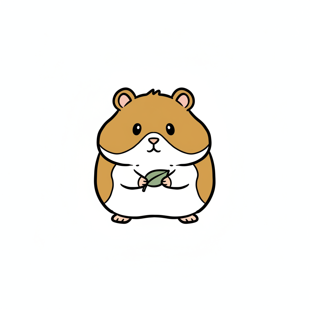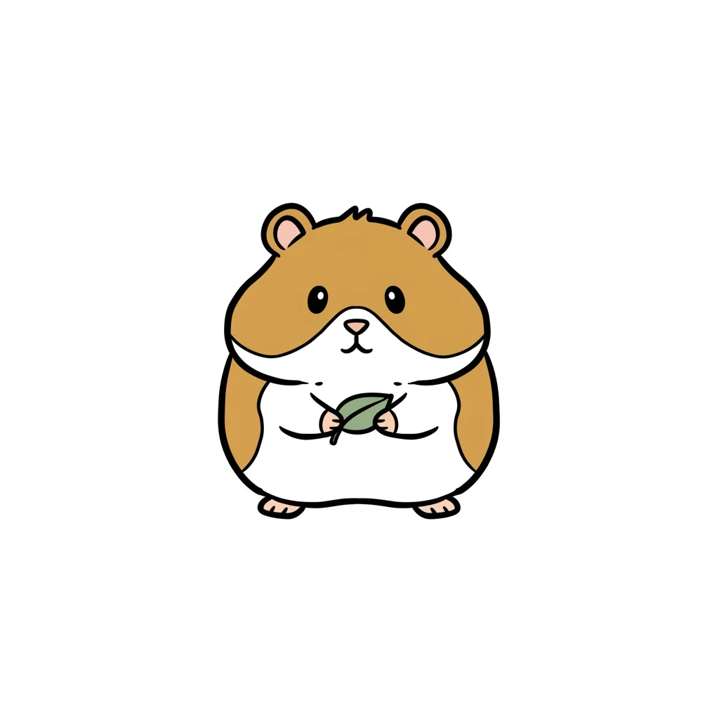 Eine süße, cartoonhafte Zeichnung eines Hamsters mit großen Augen.