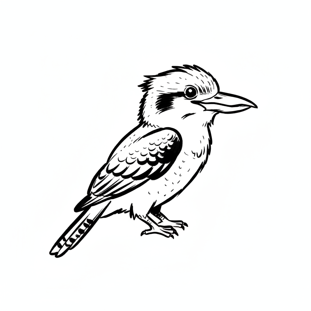 Ein illustriertes Bild eines Kookaburras in Schwarz-Weiß.