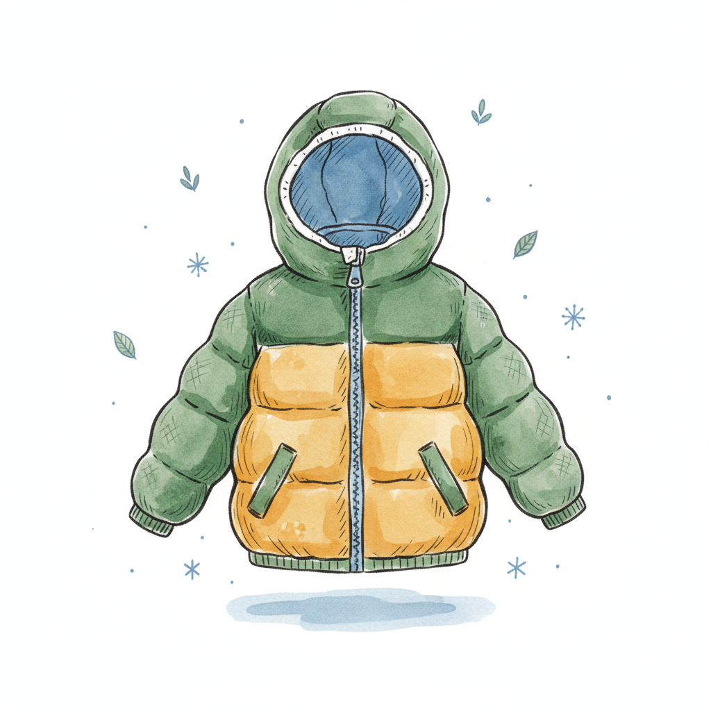 Bunte Kinderjacke in Grün und Gelb mit Kapuze und Reißverschluss.