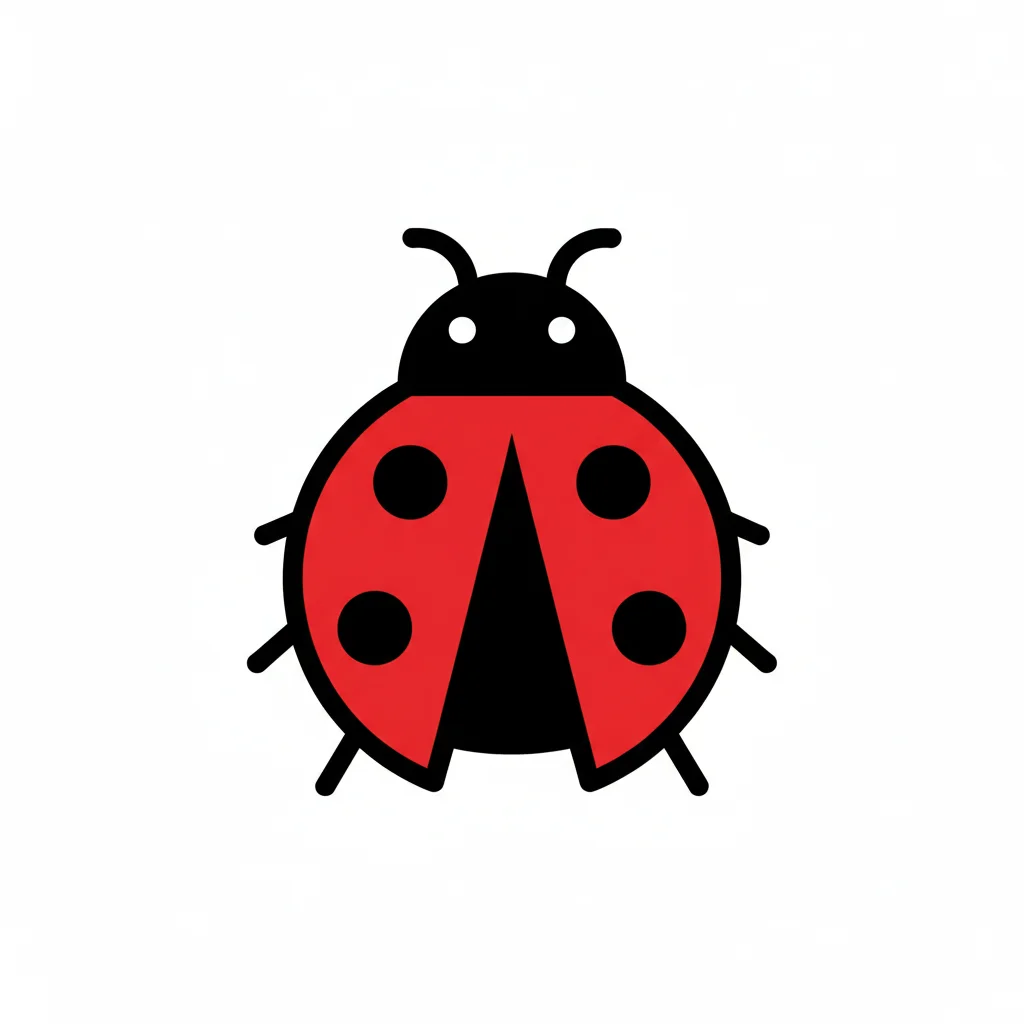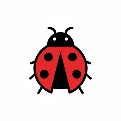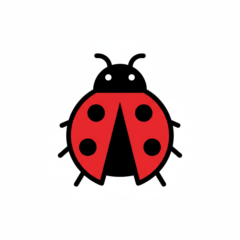 Eine stilisierte Marienkäfer-Illustration in Rot und Schwarz.