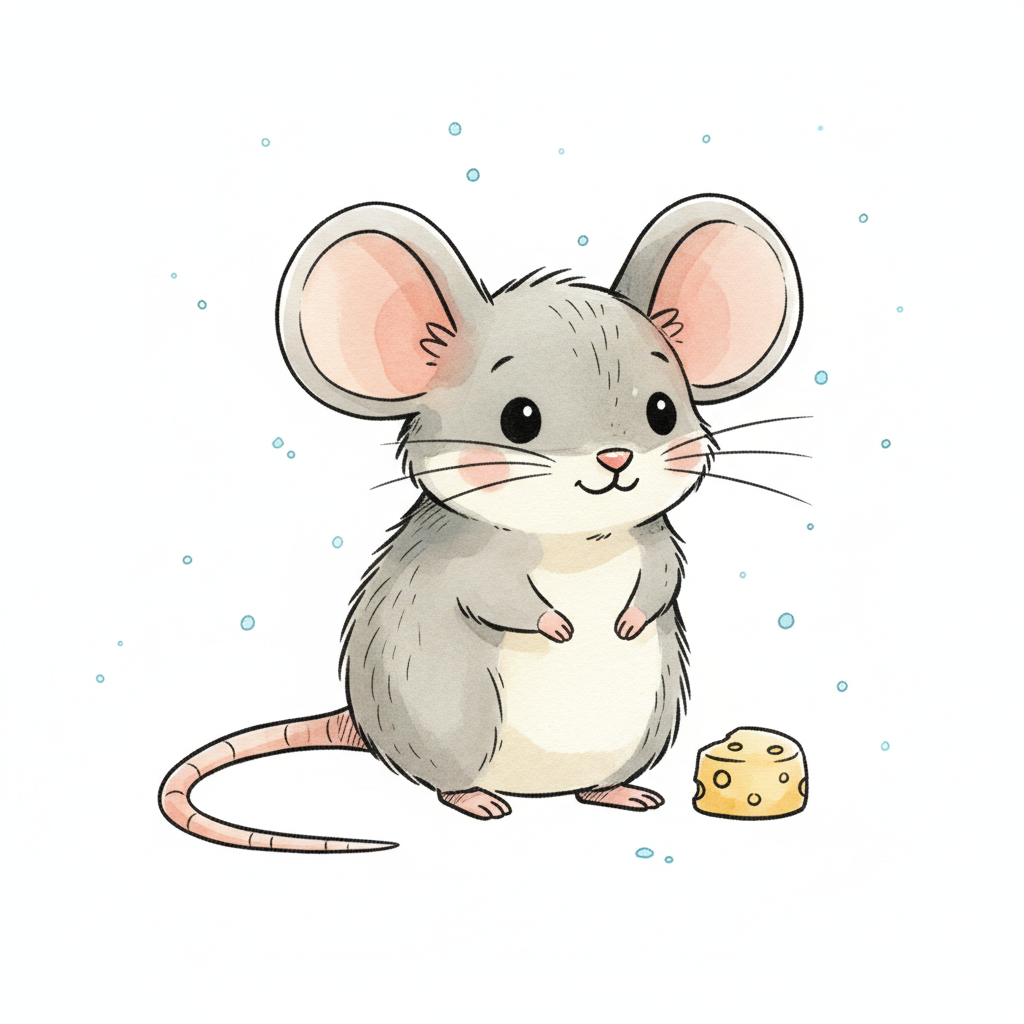 Niedlicher, kindgerecht illustrierter Gegenstand als einzelner, zentrierter Gegenstand vor weißem Hintergrund, im frech-nordischen Aquarell-Skizzenstil. Klare, leicht wackelige Tuschekonturen, sichtbare Pinsel- und Strichtextur, dezente Schraffuren, weiche handgemalte Farbflächen in gedeckten Farben. Runde, einfache Formen. Keine harten Schatten, sondern sanfte, transparente Aquarellschichten. Leicht raue, handgezeichnete Linien statt glatter Vektorkanten. Subtile, vereinzelte Kritzelpunkte oder kleine Details im Hintergrund, aber keine echte Szene. Gegenstand steht oder schwebt mittig. Insgesamt charmant, humorvoll, warm und handgemacht wirkend, wie eine moderne Kinderbuchillustration auf weißem Hintergrund.